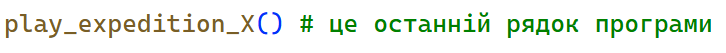 Подумайте, чому рядок play_expedition_X() має бути в самому кінці?