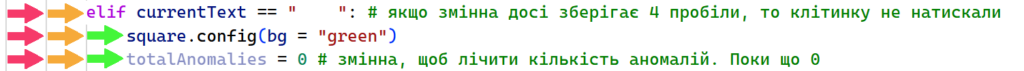 Після створення поля з аномаліями, потрібно створити код реагування на кліки користувача по клітинках за допомогою події. Модуль tkinter має спеціальні команди для розрізнення різних типів подій.