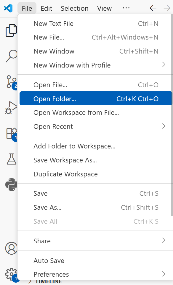 Далі відкриємо папку у VS Code для майбутніх програм File/Open Folder: