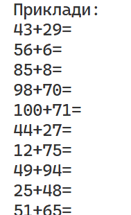 2: Допишіть в файл 10 випадкових прикладів з математики (можуть бути на одну дію).